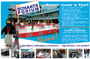 hèt SCHAATSPODIUMHuur per dag:€ 1.950,-- Compleet!Inclusief schaatsen en begeleiding door 2 personen Binnen een straal van 50 km. Van Ede geen reiskosten.